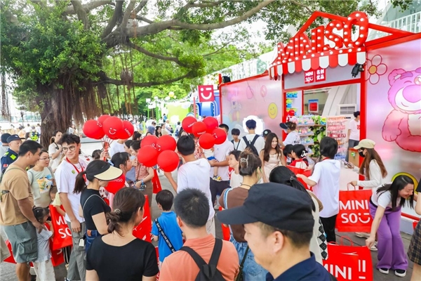 名创优品充分利用这一黄金时段,携手迪士尼推出“来名创 遇见100种笑绒”联名主题活动,活动现场汇聚超强人流,高峰期日均可达1.5万人次,其中“笑绒专列”的客流量更是突破百万人次。