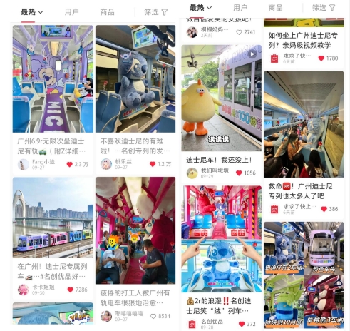 丰富的迪士尼IP融合了名创优品的“Wink”符号,为消费者带来一系列奇趣体验和互动玩法。早在节前,“笑绒专列”相关报道就在广州各大媒体霸屏,如果你打开小红书和微博等社交平台,还会立马被粉丝们在现场打卡的照片和视频疯狂刷屏,不少互动破万的爆文更是直接让名创优品和迪士尼联名主题活动的热潮席卷互联网。