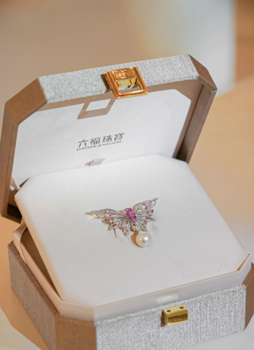近年,六福珠宝高速发展,零售版图扩展至全球11个国家及地区,店铺数量更稳步攀升,突破3300家,此次携手全球代言人唐嫣,不只是与形象有关的代言宣传,更是双方对彼此理念的认可,和一场精神契合的双向共创。为庆贺这一重要时刻,六福集团执行董事兼副行政总裁黄兰诗女士从香港远赴而来,更为品牌全球代言人唐嫣送上为其专门打造的高定蝴蝶胸针,此款胸针每一片羽翼都闪耀着璀璨的色彩和光芒,蝴蝶上镶嵌的天然钻石、彩宝及珍珠,分别代表恒久的爱、永远的美以及圆满的梦想,祝唐嫣未来的人生一路繁花盛放,事事嫣然美好。同时,它承载着六福珠宝对糖糖的顶级宠爱,期待一起携手,共同成长,为爱放闪万千璀璨。