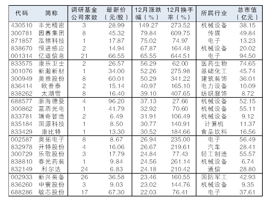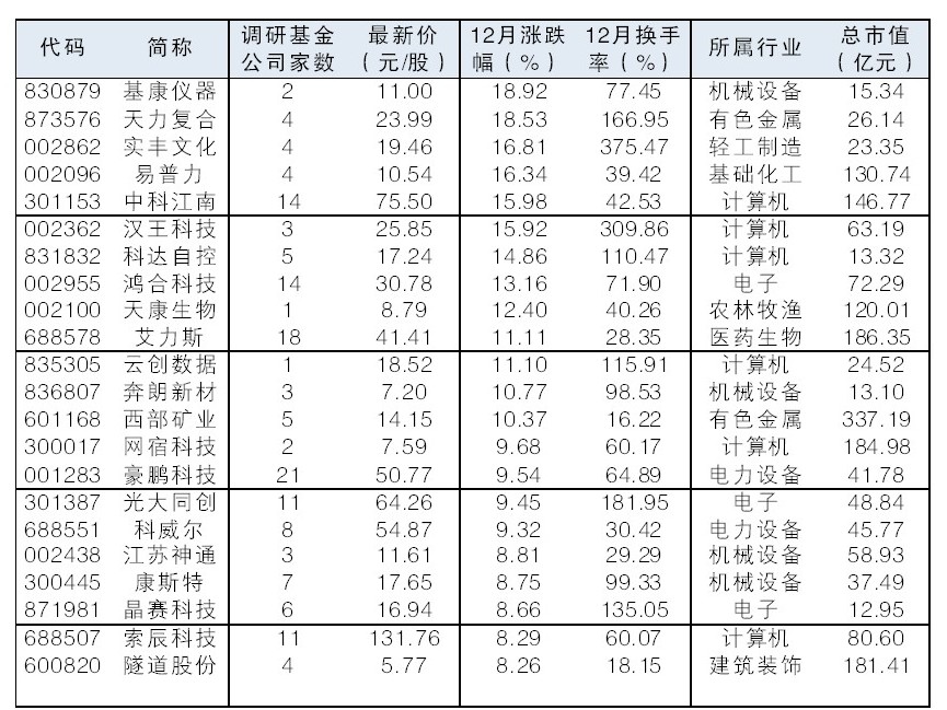 (原标题:45只基金调研股12月以来涨幅超过8%)