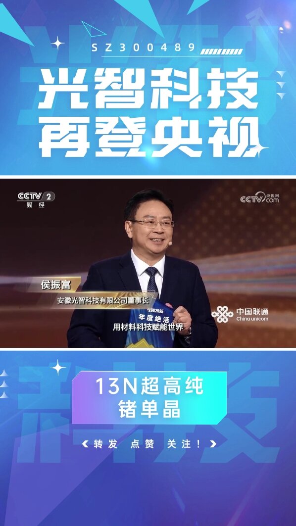 近日,中央广播电视总台“创新引领新型工业化 2023专精特新·制造强国年度盛典”在北京举办。中央广播电视总台总经理彭健明,工信部副部长徐晓兰,湖北省副省长盛阅春等出席活动并致辞。光智科技董事长侯振富、科技项目部经理潘磊等出席颁奖仪式。光智科技凭借自主研发的13N超高纯锗单晶荣获“年度绝活”称号!该盛典于昨晚7点在央视财经频道正式播出。