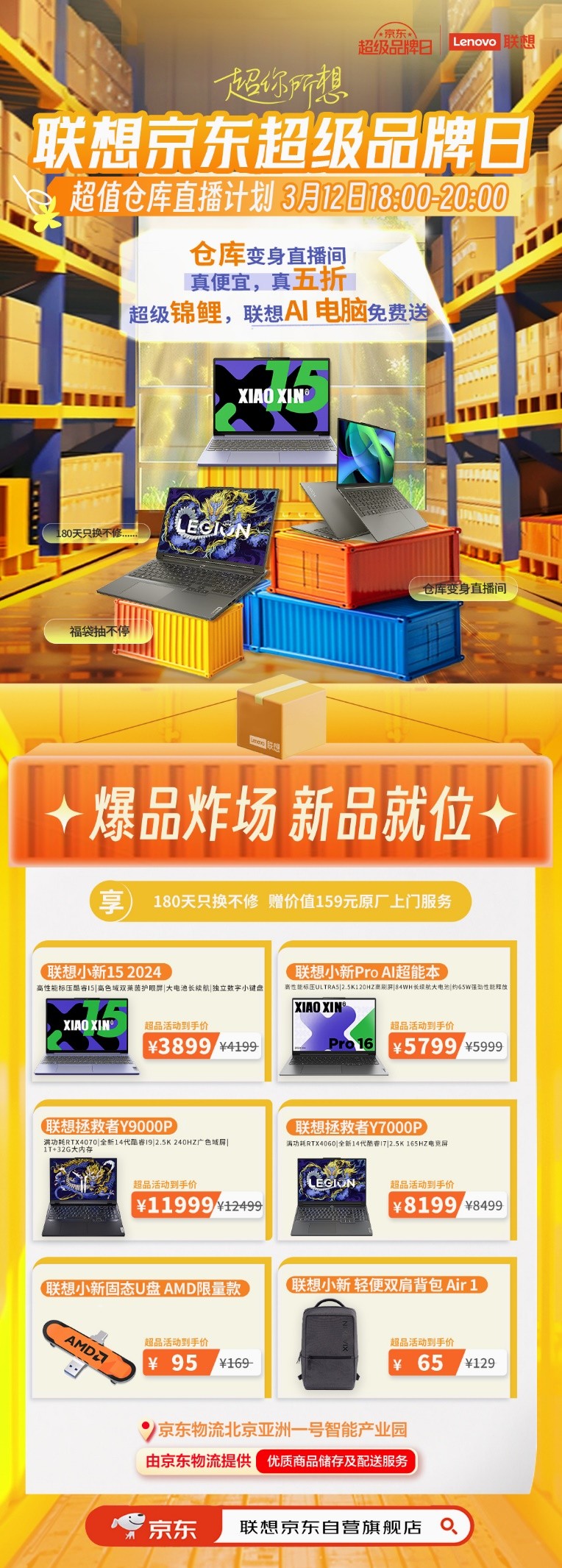 值得一提的是,3月12日18:00-20:00,联想京东自营旗舰店将启动“超值仓库直播计划”,并在直播期间抽取“超级锦鲤”,免费赠送联想AI PC。仓库直播期间,消费者不仅将看到心仪AI好物发货现场,更能在直播间准时抢福袋,享受超值爆品五折组合购活动。仓库变身直播间,AI新品免费送,超值仓库直播计划不仅献上了诚意大礼,更让消费者感到无尽新鲜趣味。