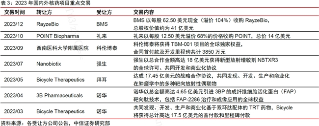 除Telix以外,近年来核药赛道的火热已经吸引了资本市场的广泛关注,过去一年已有多项大额核药项目交易。
