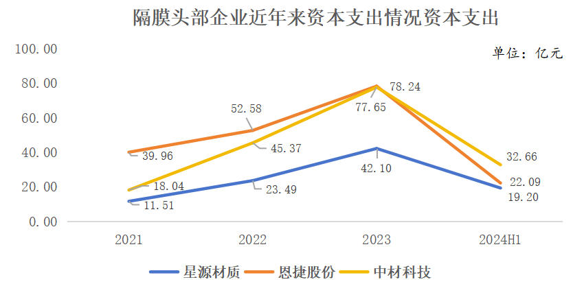 从资本支出来看,几家隔膜企业在近年的资本支出均快速增长,持续高资产支出有助于促进企业可持续发展,推动技术创新和产能扩张。