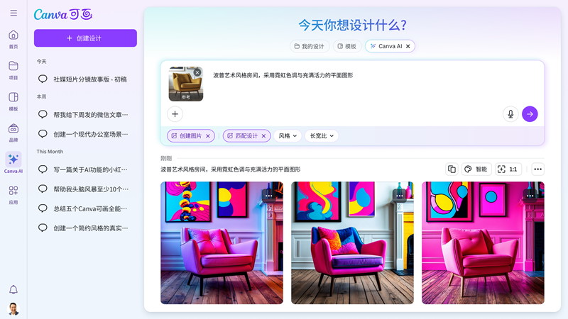 Canva AI, 输入简单指令快速生成图片、演示文稿、海报等