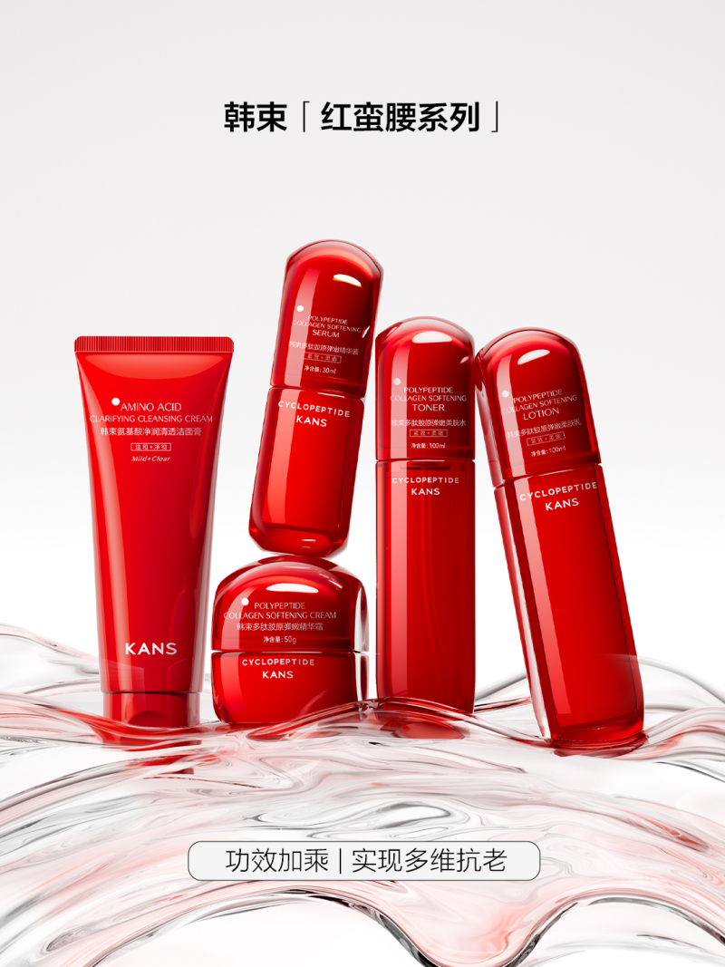 其中,市场转化成果部分,红宝书披露的实测数据位行业树立了新标杆。含环六肽 - 9 的红蛮腰 2.0 系列更达到脸颊皱纹长度缩短 38.57%,皮肤含水量增加 33.83%的显著效果。进阶的韩束 X 肽超频霜经百人双光子胶原测试,28 天胶原蛋白增加 27.59%,弹性蛋白提升 30.57%;这些量化指标不仅为消费者提供直观的功效参照,更打破了 “抗衰效果难以量化” 的行业困局。
