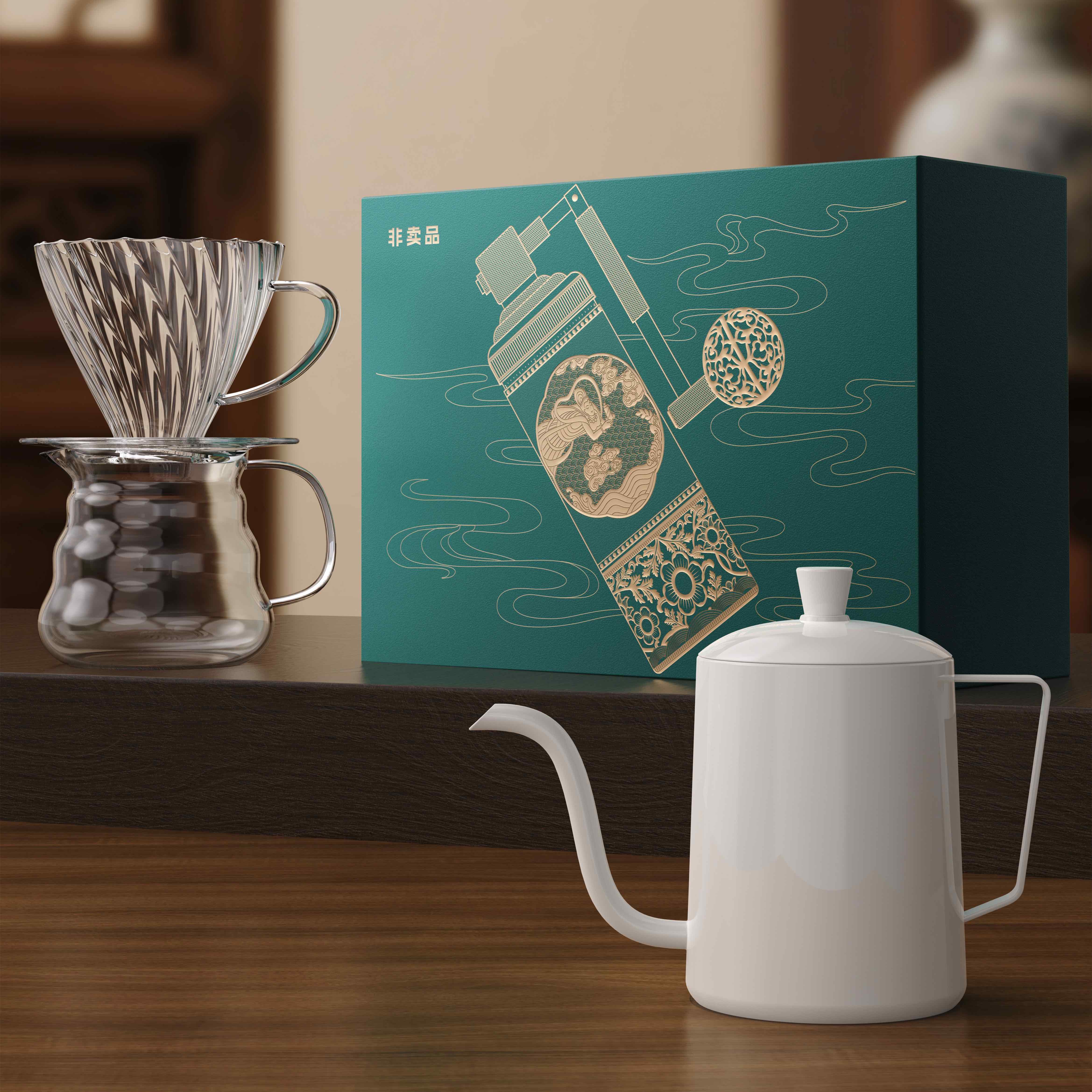 本礼盒套装分为子母盒,其母盒内含手摇咖啡研磨器与双瓶53度200ml贵州茅台酒,子盒含手冲壶、滤杯、分享壶等。从器物到佳酿,每一处细节都彰显着贵州茅台酒对品质的极致追求,既是对传统酿酒文化的传承,也是对现代生活美学的创新表达。