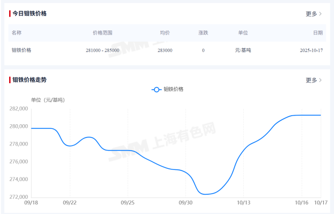钼价近期的大幅上涨更将比优集团的价值潜力进一步拉升。钼价自2024年二季度起进入持续上行通道,2025年以来涨幅尤为显著,截至2025年9月,国内50%品位钼精矿价格已稳定在4517元/吨度的高位,较2024年初累计涨幅近21.07%,10月,钼铁价格均价攀升至283000元/吨。铜市热度更高,过去三周华尔街三大投行达成共识——“铜是新石油”。当前,伦铜破10880美元,创18个月历史新高,被中美欧同步列为关键矿产。