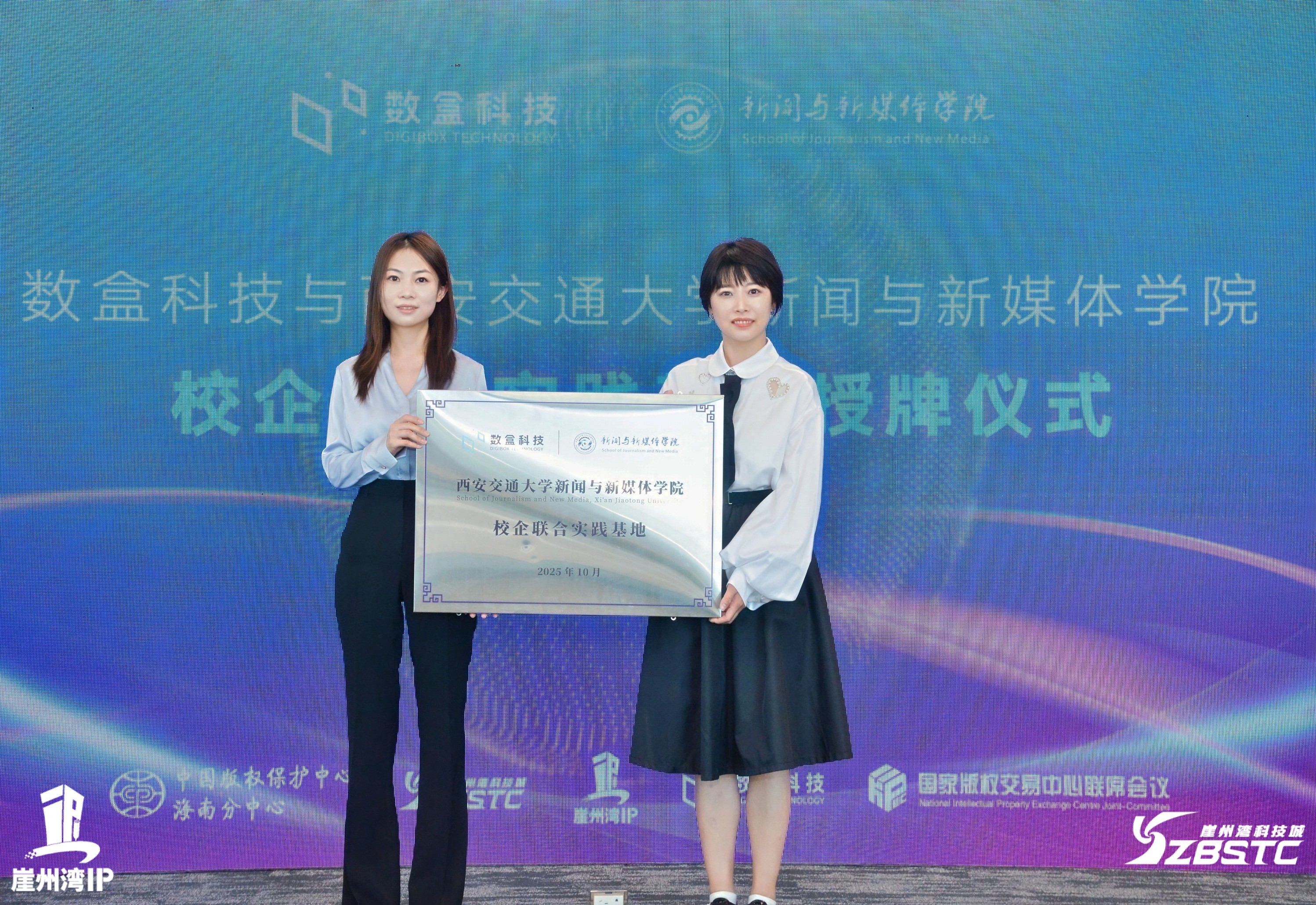 最后,数盒科技与西安交通大学新闻与新媒体学院举行了校企联合实践基地授牌仪式,双方将共同打造校企联合实践基地,在产学研融合方面迈出实质性步伐,为文化版权产业不断培养创新性人才。