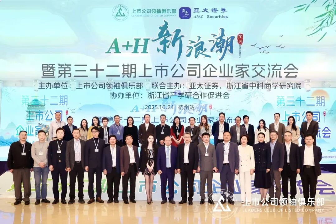 2025年10月24日,由上市公司领袖俱乐部主办,亚太证券、浙江省中科商学研究院联合主办,浙江省产学研合作促进会协办的"杭州第三十二期上市公司企业家交流会"在杭州隆重举行。