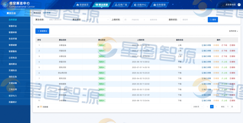 平台依托“低空算法中心”AI大模型能力,集成并调度60余项行业专用算法,构建了测绘产品自动化生产、耕地保护巡查识别、非法采矿检测、违规建筑识别、渣土运输违规识别、露天焚烧检测、街边秩序识别、城市绿化监测、交通流量识别、违规车牌识别、路况监测识别、大气环境质量监测识别等多领域的智能分析算法。通过多元场景的深度融合与智能算法的协同应用,平台实现了对巡检问题的实时识别、精准分析与高效处置,推动低空经济与智慧管理的深度结合。