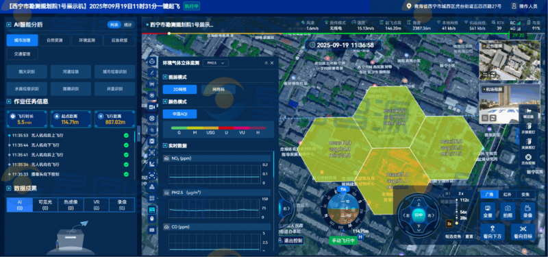 无人机搭载高灵敏度气体传感器,具备在低空高效巡航的能力,能够实时监测大气中多种关键污染物的浓度变化,包括PM2.5、PM10、臭氧、一氧化碳等。通过灵活的飞行路径规划和定点悬停,系统能够覆盖城市重点区域及污染源头,实现污染物空间分布的精准感知。