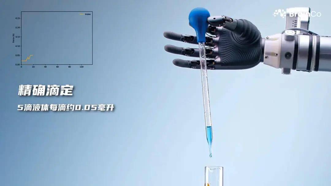 仔细来看,Revo 2触觉版本力分辨率达0.01N,在实际应用中,它既能完成0.05ml/滴的微米级滴定操作,又能动态调整抓握力度。