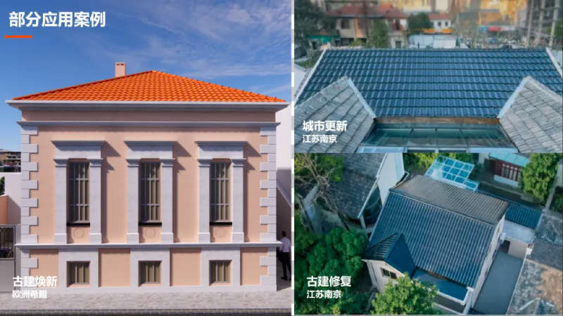 文化传承化:曲面光伏瓦完美融入传统建筑风貌,实现“风貌不变、功能焕新”。