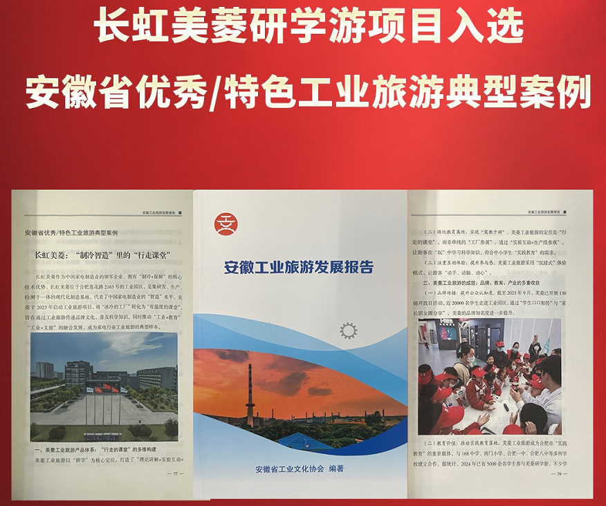 日前,安徽省工业文化协会正式对外发布安徽工业旅游发展报告,长虹美菱研学游项目编入安徽工业旅游发展报告,正式入选安徽优秀特色工业游典型案例。