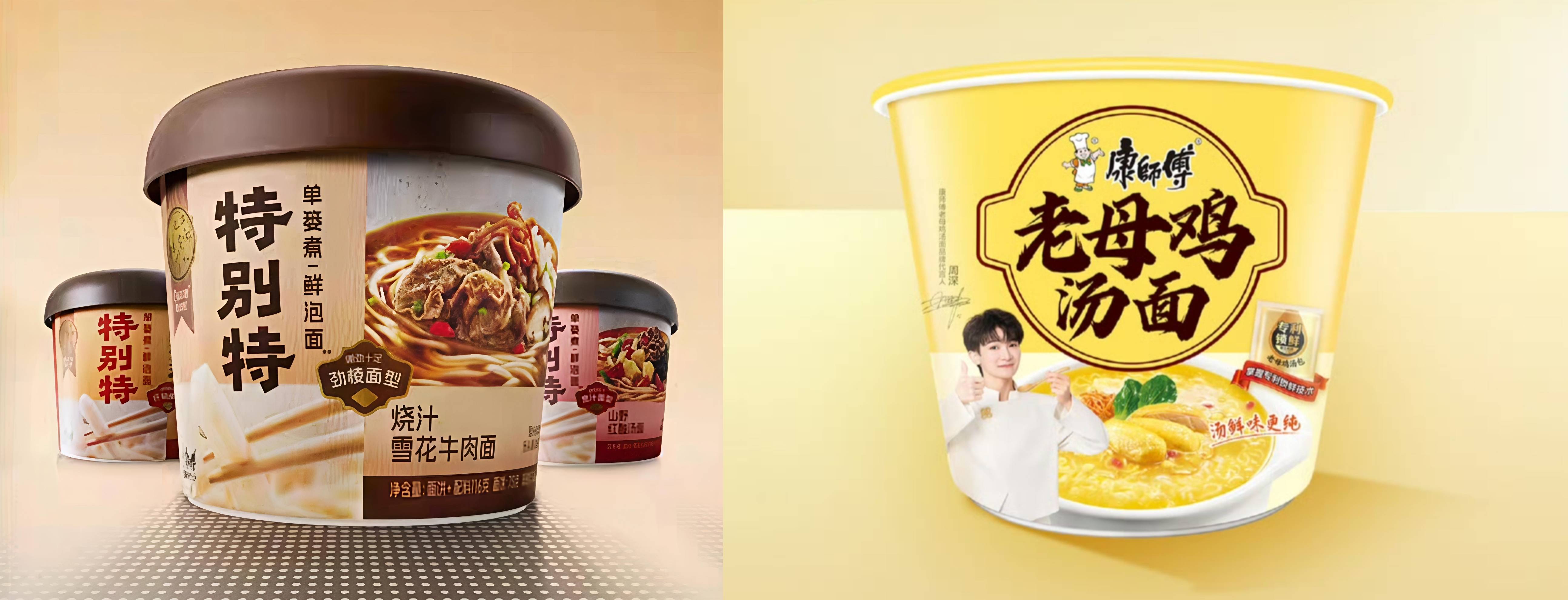 图:康师傅特别特鲜泡面、老母鸡汤面