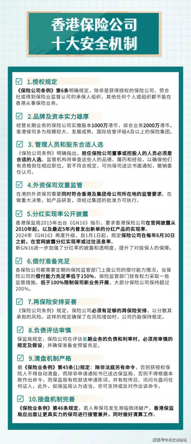 香港保险业以严密的制度设计为每一份保单构建起坚实的“防波堤”。这一防护体系以香港保监局和证监会的双重监管为基石,并依托十大安全保障机制,形成全方位、多层次的风险抵御网络。从法律监管到公司治理,从投资管理到风险分散,每一个环节都经过严谨设计与严格执行,确保客户资产在完善的制度保障下安全增值。