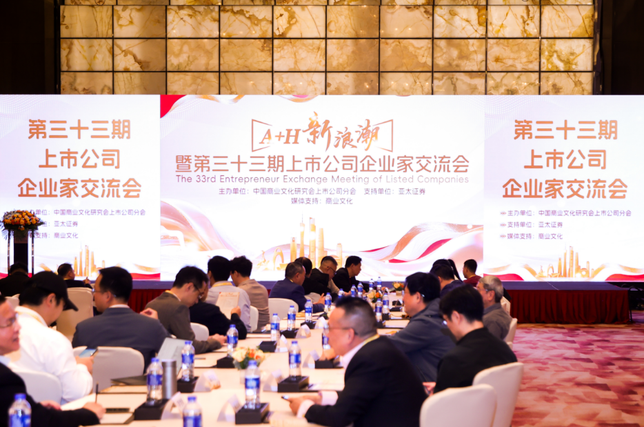 在粤港澳大湾区资本融合加速的背景下,由中国商业文化研究会上市公司分会主办,亚太证券支持单位,商业文化杂志为媒体支持。"A+H新浪潮"为主题的广州第三十三期上市公司企业家交流会于11月23日成功举办。本次活动汇聚了来自广州地区的上市公司实控人和董事长、专家学者,通过主题分享、产业对接、资源整合等形式,共同探讨A+H股上市机遇与挑战,助力企业高质量发展。活动分为日间交流会与晚宴两大环节,现场气氛热烈,成果丰硕。