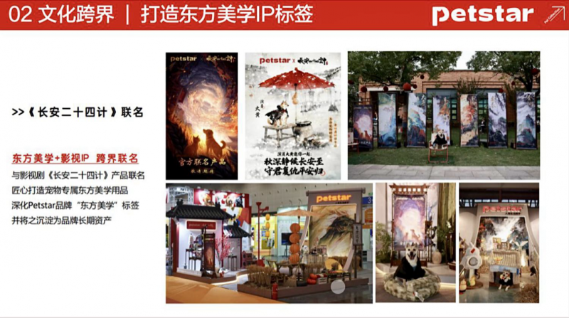 此外,Petstar正在进行与优酷重磅影视剧《长安二十四计》的跨界合作,这部即将在12月中旬上映的剧集以长安作为背景,以中国传统文化元素作为装造,Pestar与其联名并独具匠心地打造了一系列宠物专属的东方美学用品,由此,让传统文化通过产品与当代用户实现了“零距离对话”。