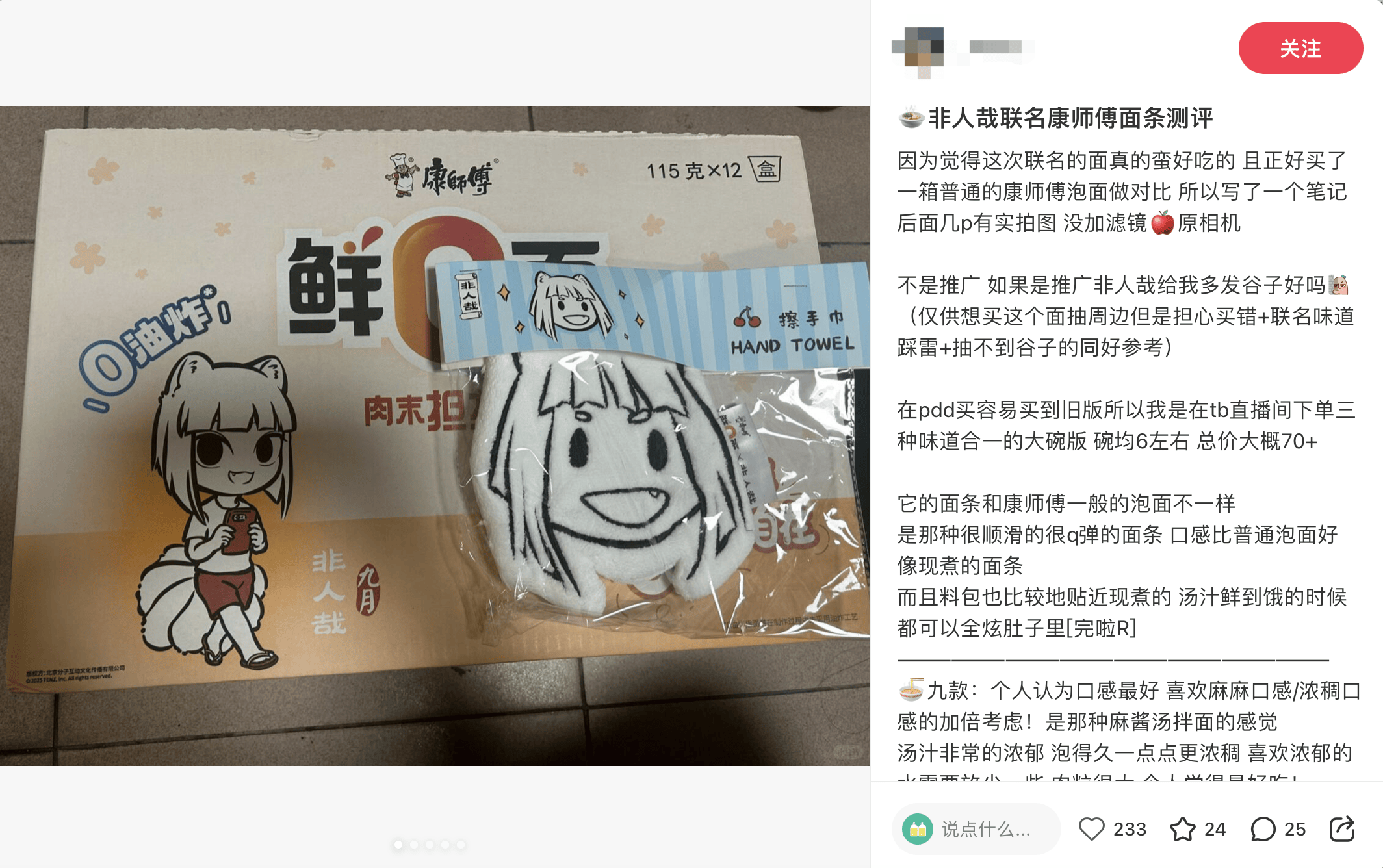 (图为康师傅唐诡\非人哉联名,图片来源:小红书)