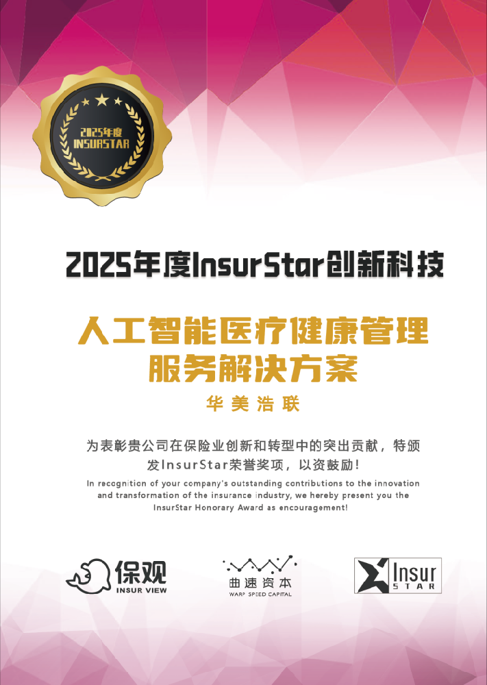 2025年12月22日,国内保险行业极具影响力的年度评选——保观·2025年度InsurStar保险行业榜单正式揭晓,华美浩联凭借“人工智能医疗健康管理服务解决方案”在保险业创新转型中的突出贡献,成功斩获年度InsurStar创新科技奖。这一荣誉不仅是行业对华美浩联技术创新实力的高度认可,更印证了其在医疗健康与保险产业融合领域的标杆价值。