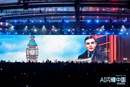 (播放AI生成的视频)你们好,我是艾伦·图灵,我在1950年的伦敦向你们问好,五年前人类发明电脑,它的体积大得像一间房子,单张卡片可存储960个byte,运算速度是每秒5000次加法运算。不过现在的我确实在想一个问题,也许它真的很荒唐,不过我还是想提出来,机器会思考吗?