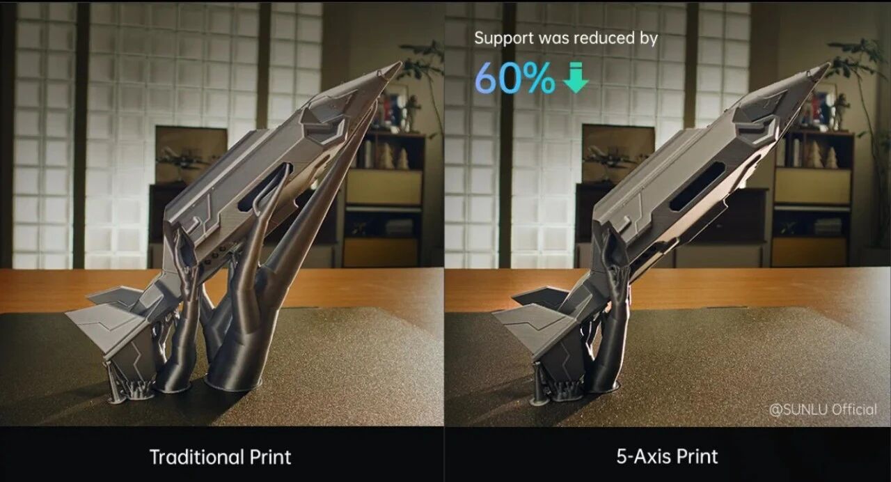 作为桌面级3D打印领域的创新力作,TOP.E R1的登场将填补消费级五轴打印量产市场的空白。不同于传统三轴设备,R1采用独特的三点支撑可倾斜平台,最大倾斜角度可达30°,配合经典XYZ三轴运动,构建出专属“五轴”打印能力,官方宣称其最大无支撑悬垂角可达75°,能显著减少支撑结构使用,降低材料消耗与后处理工作量,彻底告别打印“脚手架”的困扰。这一设计打破了此前五轴方案多停留在DIY阶段的局限,让普通用户也能轻松享受高端打印技术的便捷。