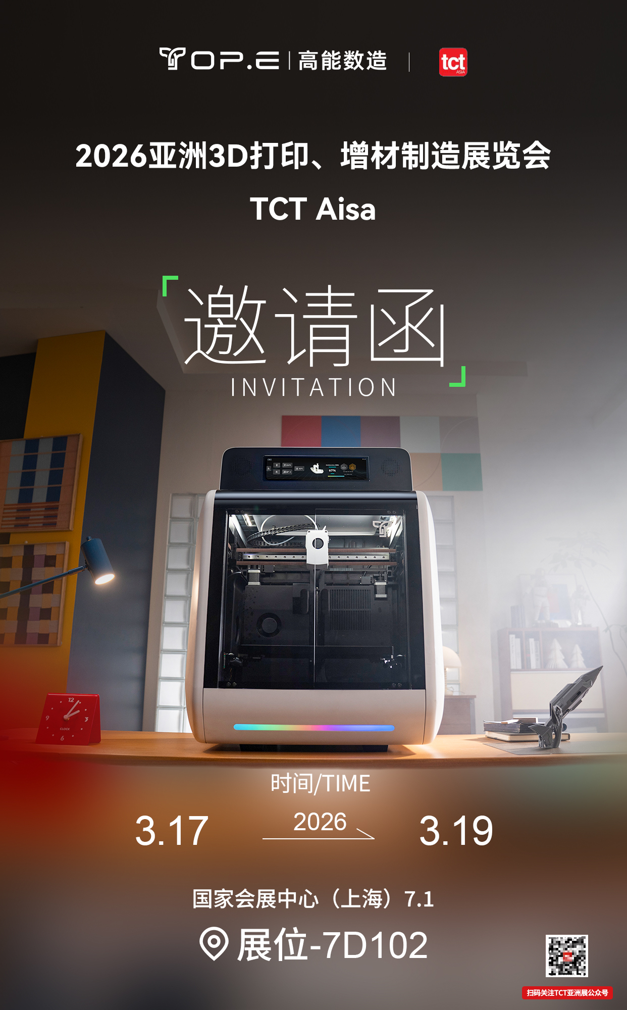 据悉,本次2026上海TCT展会,TOP.E将在7.1馆设有展位,不仅将现场展示R1的完整打印流程,还将开放真机体验,让观众近距离感受500mm/s高速打印、双AI摄像头实时监控等强大功能,亲身解锁“少支撑、零门槛、多色彩”的智能打印新体验。这场新品与盛会的碰撞,必将成为展会焦点,诚邀全球3D打印爱好者、创客、教育从业者、行业经销商莅临现场,共鉴技术革新,抢占消费级3D打印新风口。