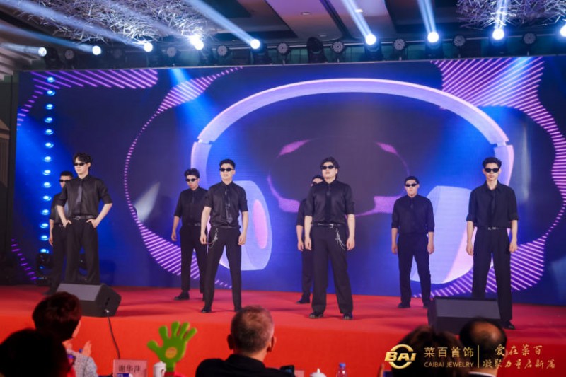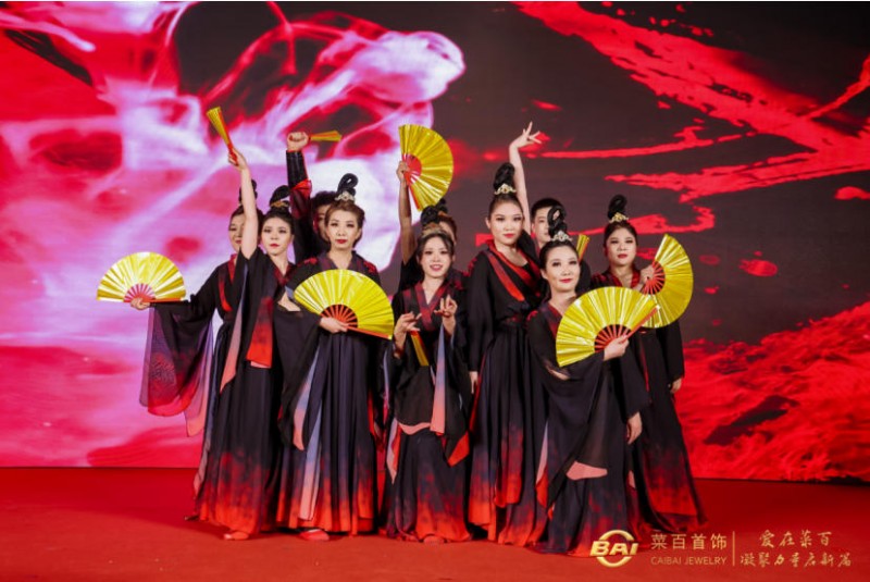 文艺汇演环节精彩纷呈、高潮迭起,全体员工沉浸在欢乐喜庆的氛围中,共同为菜百70华诞喝彩。