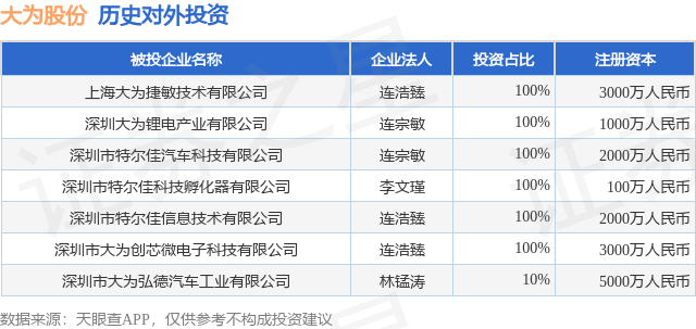 证券之星消息,根据天眼查APP显示,大为股份(002213.SZ)新增一起对外投资事件,被投资公司为上海大为捷敏技术有限公司,法定代表人连浩臻,投资占比为100%。该公司从事软件和信息技术服务业,注册资本为3000万人民币。目前,大为股份共存在对外投资7项,详见下表: