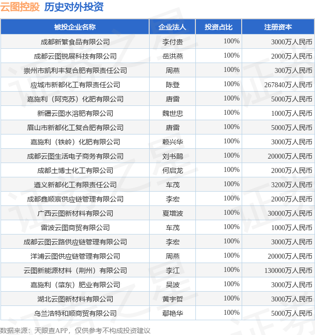 证券之星消息,根据天眼查APP显示,云图控股(002539.SZ)新增一起对外投资事件,被投资公司为四川马边晟隆矿业有限公司,法定代表人童清友,投资占比为49%。该公司从事非金属矿采选业,注册资本为10000万人民币。目前,云图控股共存在对外投资37项,投资占比前20的项目见下表: