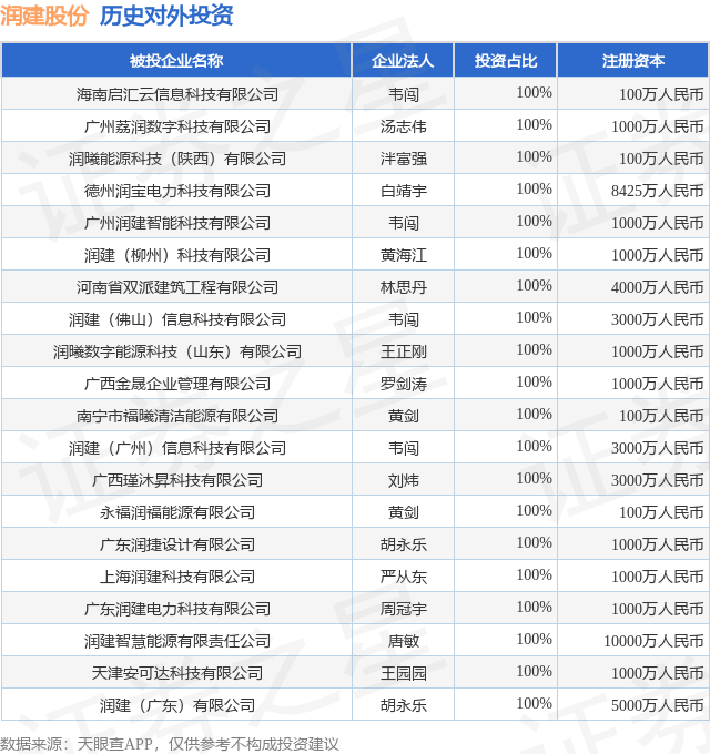 证券之星消息,根据天眼查APP显示,润建股份(002929.SZ)新增一起对外投资事件,被投资公司为海南启汇云信息科技有限公司,法定代表人韦闯,投资占比为100%。该公司从事软件和信息技术服务业,注册资本为100万人民币。目前,润建股份共存在对外投资100项,投资占比前20的项目见下表: