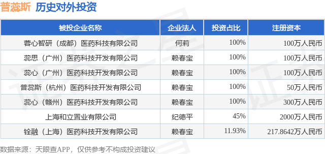 通过天眼查大数据分析,普蕊斯(上海)医药科技开发股份有限公司共对外投资了6家企业,参与招投标项目17次;财产线索方面有商标信息40条,专利信息4条,著作权信息55条;此外企业还拥有行政许可2个。据2024年报数据,普蕊斯长期股权投资848.24万元,同比减9.59%。