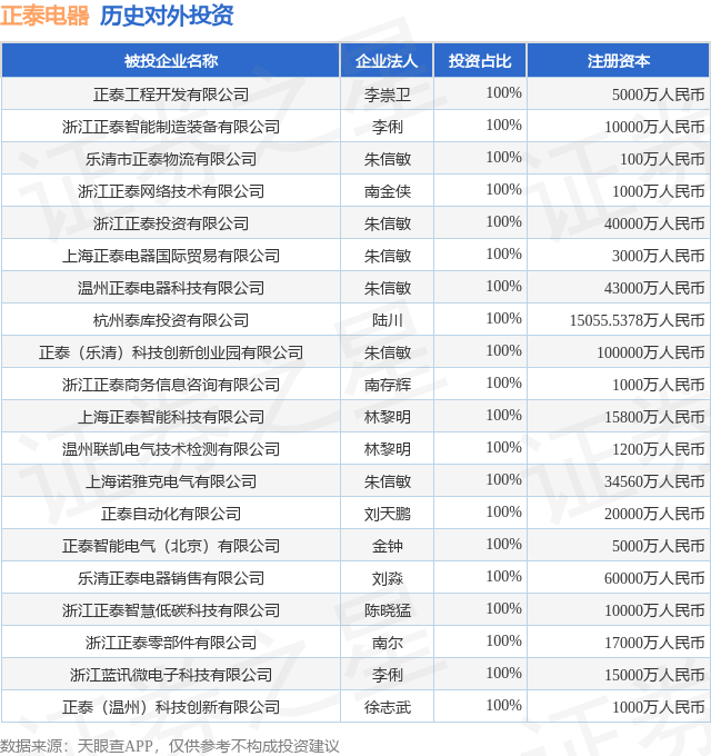 证券之星消息,根据天眼查APP显示,正泰电器(601877.SH)新增一起对外投资事件,被投资公司为乐清泰禾企业管理合伙企业(有限合伙),法定代表人张钦松,投资占比为99.25%。该公司从事商务服务业,注册资本为4000万人民币。目前,正泰电器共存在对外投资53项,投资占比前20的项目见下表: