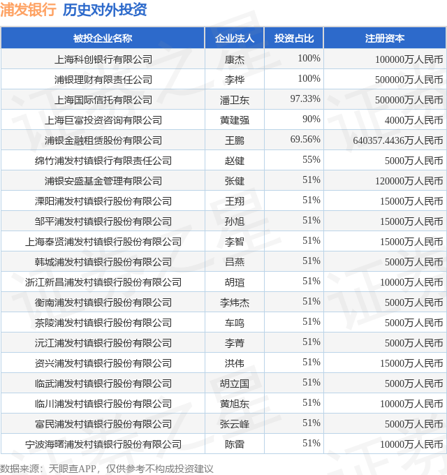 证券之星消息,根据天眼查APP显示,浦发银行(600000.SH)新增一起对外投资事件,被投资公司为北京首都在线科技股份有限公司,法定代表人曲宁,投资占比为1.35%。该公司从事软件和信息技术服务业,注册资本为50190.8216万人民币。目前,浦发银行共存在对外投资214项,投资占比前20的项目见下表: