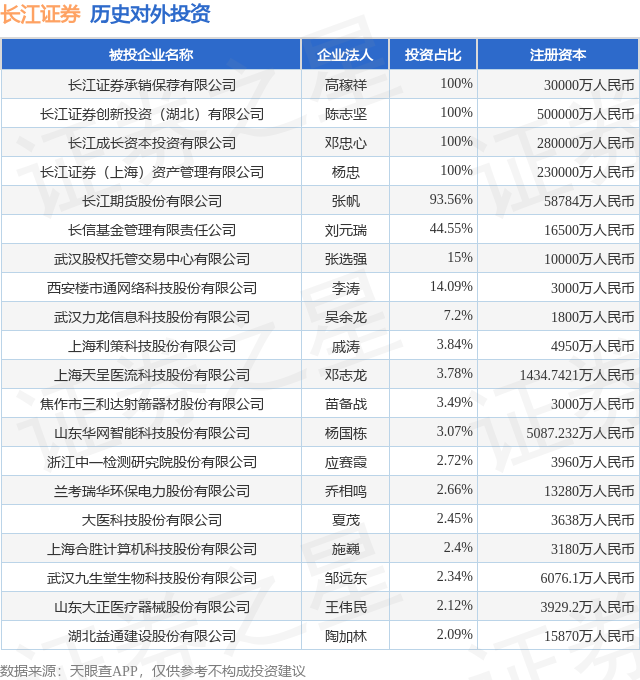 证券之星消息,根据天眼查APP显示,长江证券(000783.SZ)新增一起对外投资事件,被投资公司为锦州神工半导体股份有限公司,法定代表人潘连胜,投资占比为0.45%。该公司从事非金属矿物制品业,注册资本为17030.5736万人民币。目前,长江证券共存在对外投资56项,投资占比前20的项目见下表: