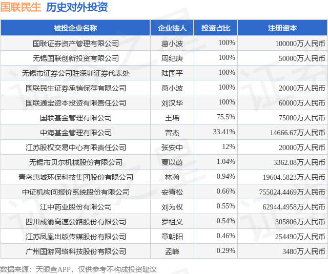证券之星消息,根据天眼查APP显示,国联民生(601456.SH)新增一起对外投资事件,被投资公司为江中药业股份有限公司,法定代表人刘为权,投资占比为0.55%。该公司从事医药制造业,注册资本为62944.4958万人民币。目前,国联民生共存在对外投资15项,详见下表: