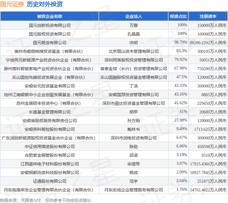 证券之星消息,根据天眼查APP显示,国元证券(000728.SZ)新增一起对外投资事件,被投资公司为合肥科拜尔新材料股份有限公司,法定代表人姜之涛,投资占比为0.31%。该公司从事化学原料和化学制品制造业,注册资本为6285.3326万人民币。目前,国元证券共存在对外投资29项,投资占比前20的项目见下表: