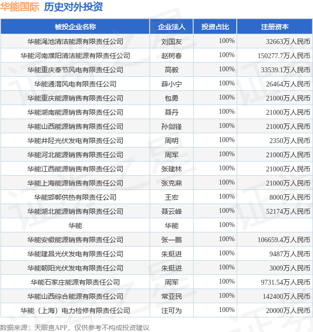 证券之星消息,根据天眼查APP显示,华能国际(600011.SH)新增一起对外投资事件,被投资公司为山西建华能源有限公司,法定代表人杨书伟,投资占比为25%。该公司从事电力、热力生产和供应业,注册资本为10000万人民币。目前,华能国际共存在对外投资183项,投资占比前20的项目见下表:
