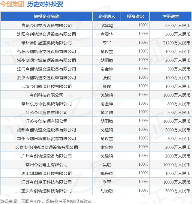 通过天眼查大数据分析,今创集团股份有限公司共对外投资了42家企业,参与招投标项目385次;财产线索方面有商标信息69条,专利信息462条,著作权信息19条;此外企业还拥有行政许可29个。据2024年报数据,今创集团商誉77.8万元,同比未变化。长期股权投资3.79亿元,同比增10.97%。