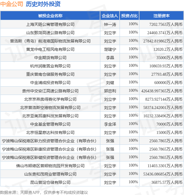 通过天眼查大数据分析,中国国际金融股份有限公司共对外投资了84家企业,参与招投标项目2907次;财产线索方面有商标信息752条,专利信息71条,著作权信息4315条;此外企业还拥有行政许可21个。据2024年报数据,中金公司商誉16.23亿元,同比未变化。长期股权投资10.06亿元,同比减6.49%。