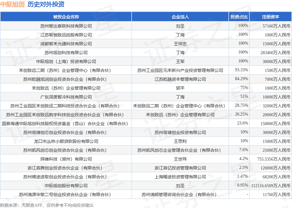 证券之星消息,根据天眼查APP显示,中际旭创(300308.SZ)新增一起对外投资事件,被投资公司为国泰海通中际旭创科技股权投资基金(昆山)合伙企业(有限合伙),法定代表人,投资占比为23.6%。该公司从事资本市场服务,注册资本为150000万人民币。目前,中际旭创共存在对外投资21项,投资占比前20的项目见下表: