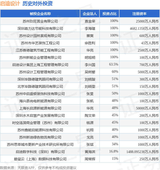 证券之星消息,根据天眼查APP显示,启迪设计(300500.SZ)新增一起对外投资事件,被投资公司为时空涟漪商业管理(苏州)有限公司,法定代表人钱源,投资占比为45%。该公司从事商务服务业,注册资本为100万人民币。目前,启迪设计共存在对外投资24项,投资占比前20的项目见下表: