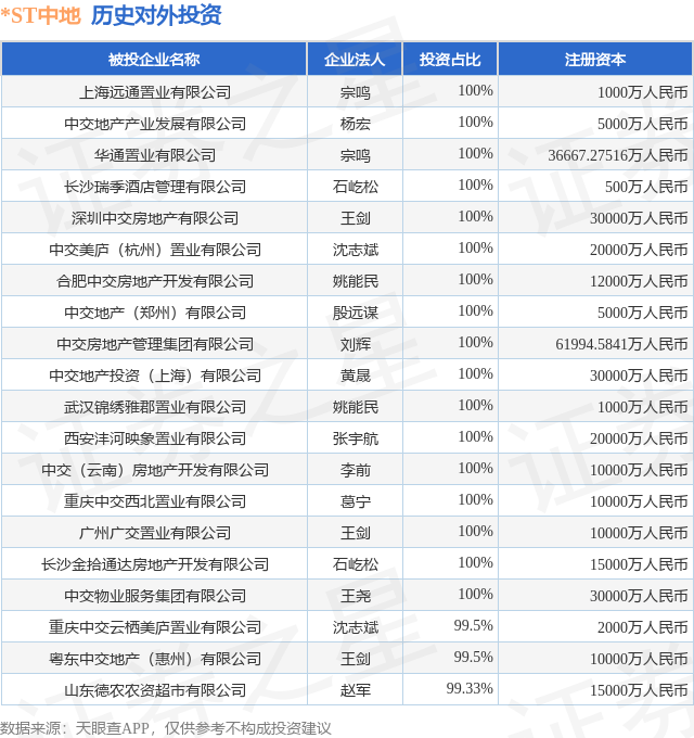 证券之星消息,根据天眼查APP显示,*ST中地(000736.SZ)新增一起对外投资事件,被投资公司为上海远通置业有限公司,法定代表人宗鸣,投资占比为100%。该公司从事房地产业,注册资本为1000万人民币。目前,*ST中地共存在对外投资65项,投资占比前20的项目见下表: