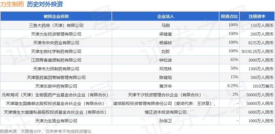 证券之星消息,根据天眼查APP显示,力生制药(002393.SZ)新增一起对外投资事件,被投资公司为天津建生国鑫泰达股权投资基金合伙企业(有限合伙),法定代表人建信股权投资管理有限责任公司(委派代表:王洪章)、,投资占比为-。该公司从事资本市场服务,注册资本为50000万人民币。目前,力生制药共存在对外投资12项,详见下表:
