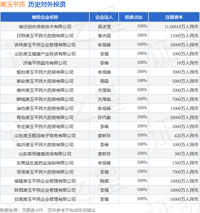 通过天眼查大数据分析,漱玉平民大药房连锁股份有限公司共对外投资了64家企业,参与招投标项目150次;财产线索方面有商标信息574条,专利信息7条,著作权信息27条;此外企业还拥有行政许可45个。据2024年报数据,漱玉平民商誉17.53亿元,同比增26.34%。长期股权投资1.16亿元,同比增6.86%。