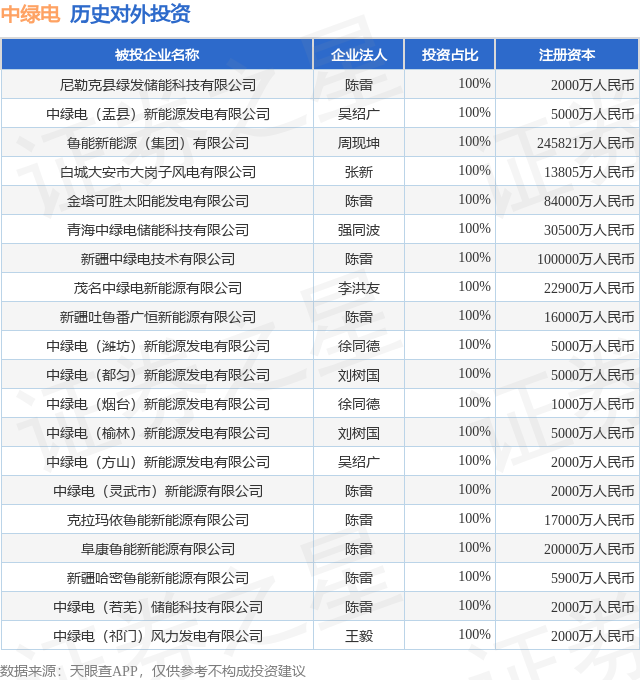 证券之星消息,根据天眼查APP显示,中绿电(000537.SZ)新增一起对外投资事件,被投资公司为尼勒克县绿发储能科技有限公司,法定代表人陈雷,投资占比为100%。该公司从事电力、热力生产和供应业,注册资本为2000万人民币。目前,中绿电共存在对外投资31项,投资占比前20的项目见下表: