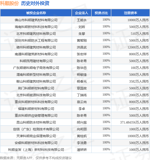 证券之星消息,根据天眼查APP显示,科顺股份(300737.SZ)新增一起对外投资事件,被投资公司为嘉兴映惠股权投资合伙企业(有限合伙),法定代表人深圳市映仁私募股权基金有限公司,投资占比为28.87%。该公司从事资本市场服务,注册资本为6927.87万人民币。目前,科顺股份共存在对外投资59项,投资占比前20的项目见下表:
