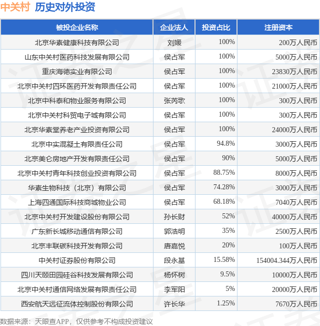 通过天眼查大数据分析,北京中关村科技发展(控股)股份有限公司共对外投资了24家企业,参与招投标项目6次;财产线索方面有商标信息190条,著作权信息2条;此外企业还拥有行政许可13个。据2024年报数据,中关村商誉2.24亿元,同比增1.75%。长期股权投资231.9万元,同比减8.81%。