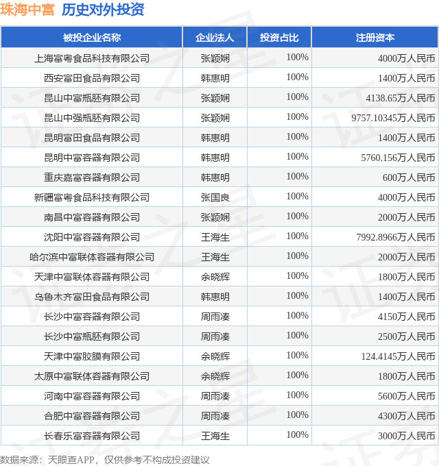 证券之星消息,根据天眼查APP显示,珠海中富(000659.SZ)新增一起对外投资事件,被投资公司为上海富粤食品科技有限公司,法定代表人张颖娴,投资占比为100%。该公司从事研究和试验发展,注册资本为4000万人民币。目前,珠海中富共存在对外投资80项,投资占比前20的项目见下表: